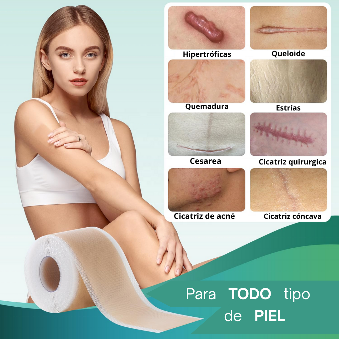 Nuestra cinta de silicona no solo ayuda con cicatrices, también alisa y rejuvenece tu piel.