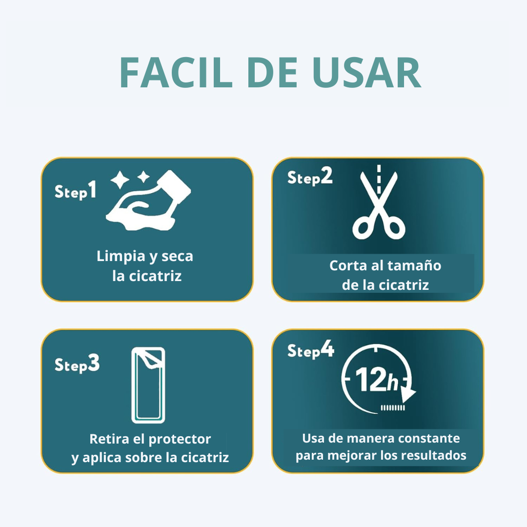 Con nuestra cinta de silicona, cuidar tus cicatrices es tan simple como cortar, aplicar y dejar actuar.